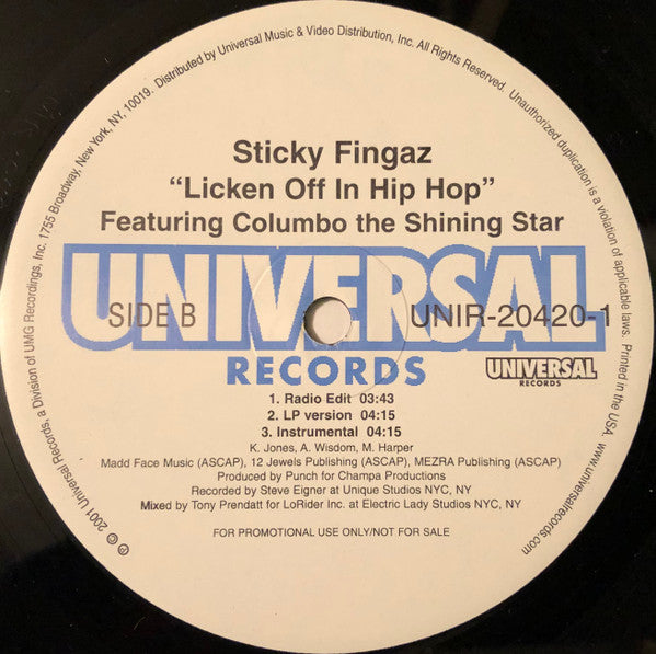 ARTIST: Sticky FingazTITLE: Ghetto / Licken Off In Hip-Hop