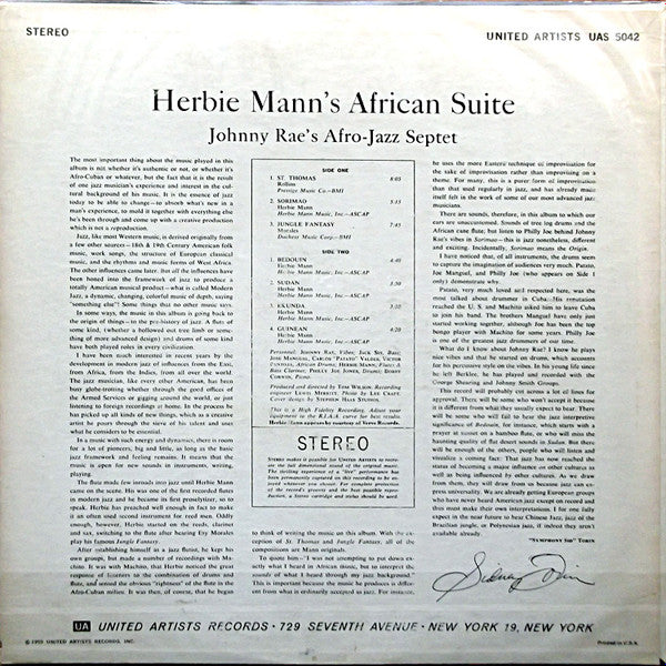 ARTIST: Johnny Rae's Afro-Jazz SeptetTITLE: Herbie Mann's African Suite