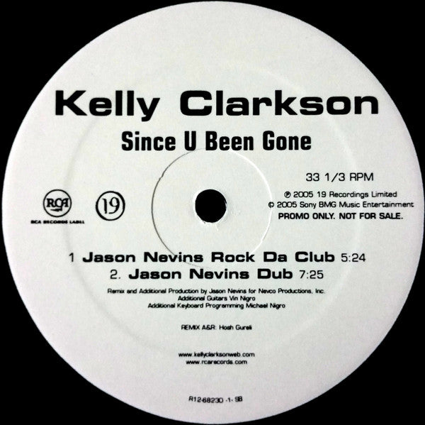 ARTIST: Kelly ClarksonTITLE: Since U Been Gone (Jason Nevins Remixes)
